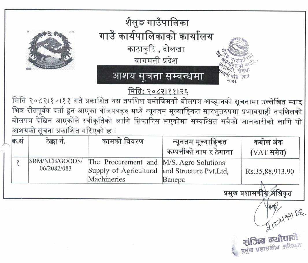 कोटेशन पेश गर्ने सम्बन्धी सूचना