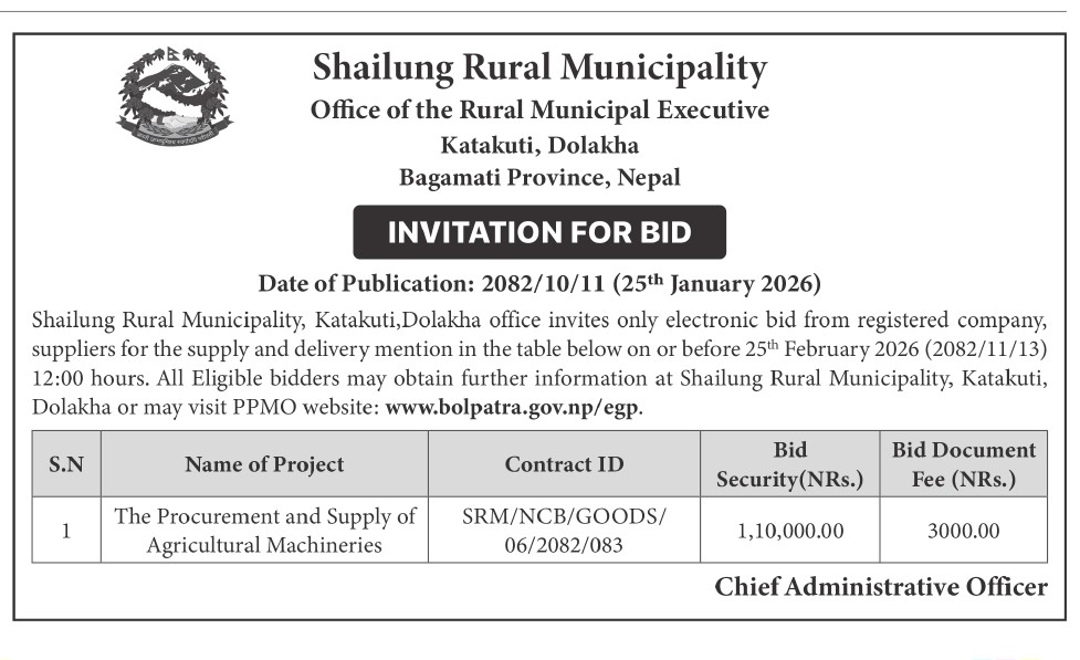 सार्वजनिक खरिद/बोलपत्र सूचना