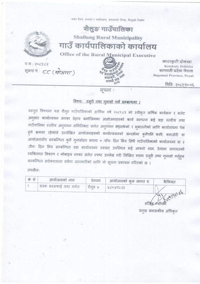 उजुरी तथा गुनासो गर्ने सम्बन्धमा