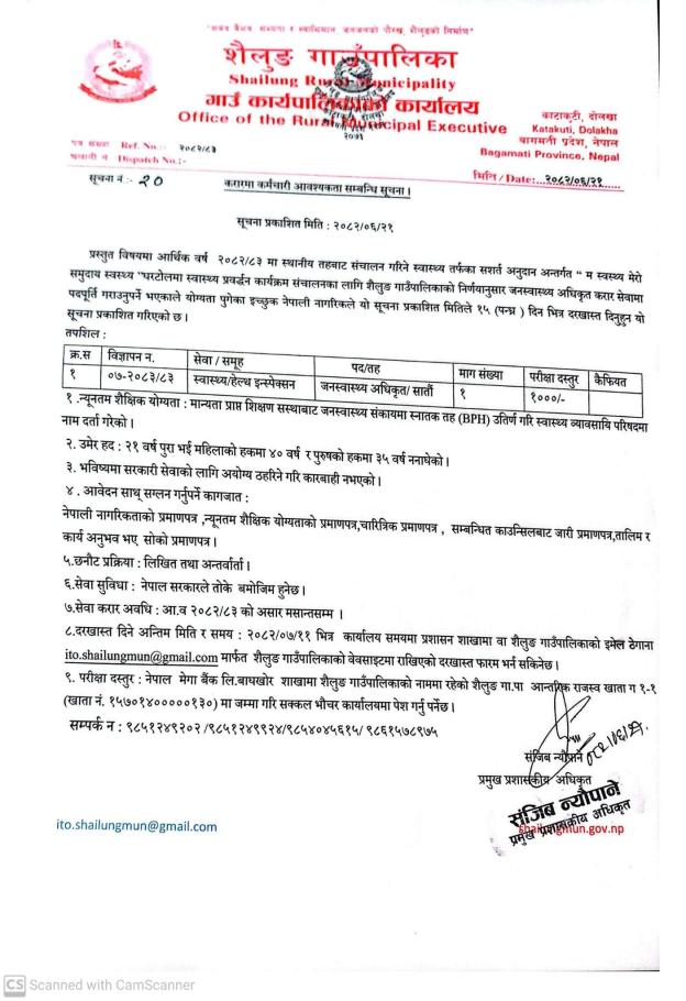 करार सेवामा कर्मचारी आवश्यकता सम्बन्धी सूचना