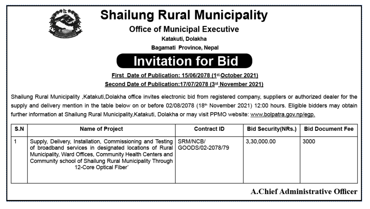 सार्वजनिक खरिद/बोलपत्र सूचना